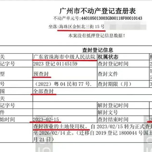 根据此前恒大金碧花园五期业主发布的查封信息,查封登记时间为6月30日,查封类型为预查封,期限为36个月,查封时间为2023年2月15日-2026年2月14日。