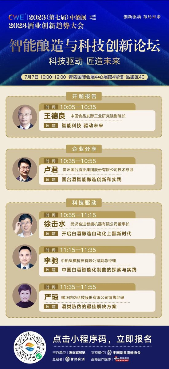 论坛名称:科技驱动 匠造未来——2023酒业创新趋势大会·智能酿造与科技创新论坛