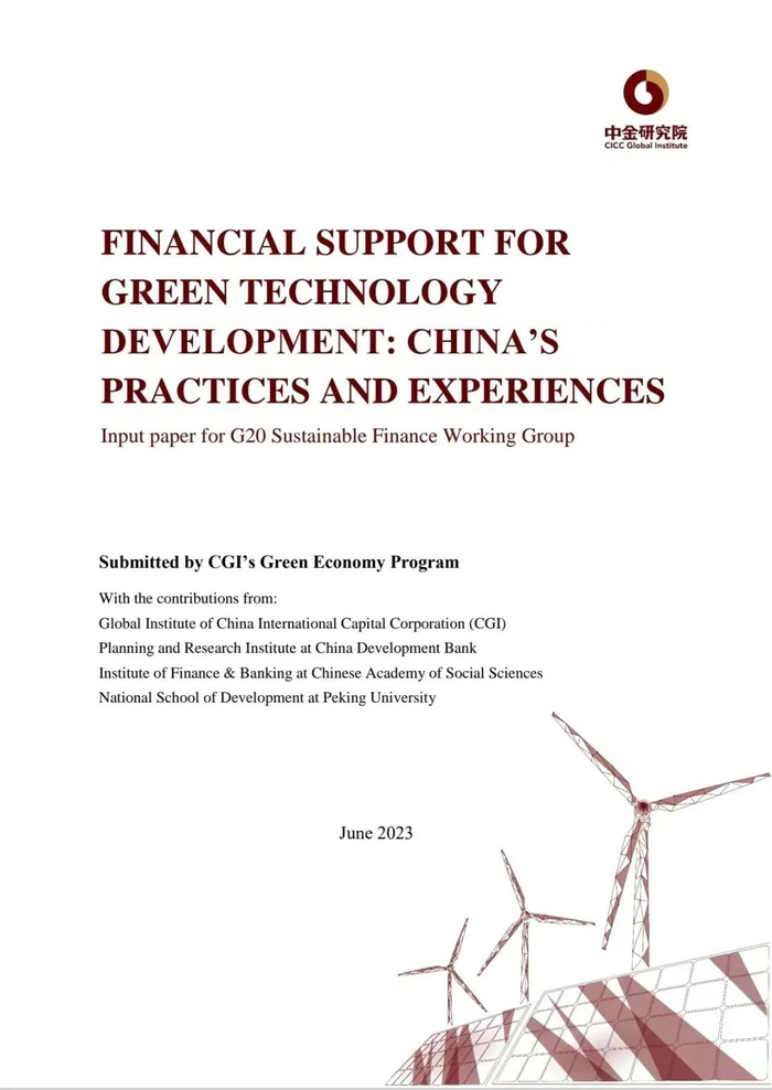 近日,中金研究院向二十国集团(G20)可持续金融工作组提交了题为《金融支持绿色科技发展:中国的实践与经验》的研究成果文件,系统梳理了我国金融支持绿色低碳技术发展的实践案例和政策经验。该文件将为G20可持续金融工作组汇总、提炼各国最佳实践并向国际社会提出建议提供重要参考。
