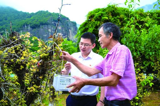 徐海锋(左)了解农户生产情况。