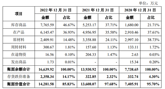 另外需要注意的是,2020年12月31日、2021年12月31日以及2022年12月31日,卓谊生物的存货账面价值分别为7,405.91万元、1.36亿元及1.43亿元,占资产总额的比例分别为10.62%、15.21%以及12.08%,存货规模较大。同期,卓谊生物存货跌价准备计提余额分别为332.74万元、322.85万元以及2,358.34万元。2022年,卓谊生物的存货跌价准备计提激增了6倍多。