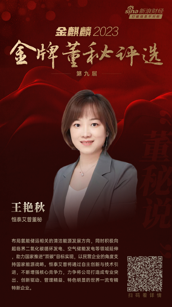 新浪财经主办的2023(第九届)金牌董秘评选重磅来袭,评选期间,新浪财经推出“董秘说”专访活动,聚焦碳中和、AI浪潮对企业发展的影响,探讨企业如何在碳中和和AI的双重驱动下实现可持续与创新发展,并通过董秘视角带领投资者深入了解公司情况。本期,带来恒泰艾普董秘王艳秋专访>>
