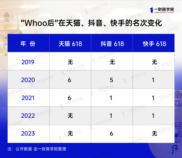 不难注意到,连续几年排进天猫大促美妆榜前十的韩妆品牌“The History of Whoo(后)”,去年开始消失在天猫榜;就连其营销主阵地抖音、快手,今年618成绩也大不如前——在抖音,从曾经的美妆榜第1名滑至第6名,在快手则飞出榜单之外。