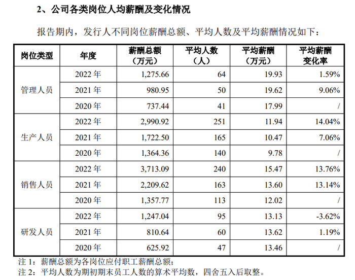 2022 年,润本的研发人员为 95 人,人均薪酬约 13.13 万/年,仅比生产人员的薪酬略高些许。