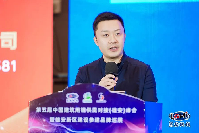 兰格集团总裁刘陶然首先代表主办方发表了欢迎致辞,他表示,兰格集团成立27年以来,一直深耕于钢铁行业全产业链,打造了以“数据×科技×交易”三大板块为核心的钢铁数字供应链服务平台,全方位赋能钢铁产业链。近年来,先后推出了自主研发的钢铁EBC数字化管理系统、“钢铁智策”AI大数据预测系统等一系列领先的智能化产品,今天还将隆重上线“工程智采”招投标采供专业平台,持续推动钢铁行业高质量发展。