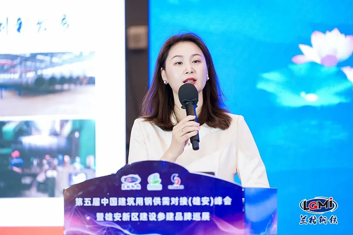 厦门建发钢铁集团黑色产业研究院院长崔勤以“研究赋能建筑钢材创新发展”为主题发表了演讲,她对金融衍生品创新模式、产业优势、研究体系等方面进行了讲解,并针对套期、含权贸易、基差业务等工具的使用进行实操案例讲解。
