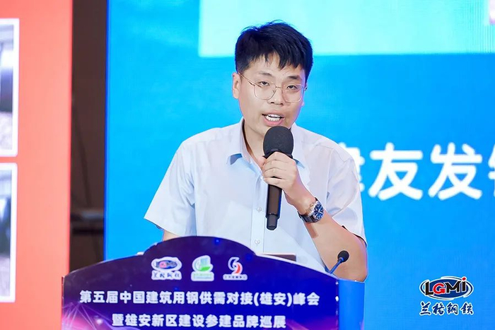 天津友发钢管集团一分公司终端客户服务部经理张瑞发表了主题为“打造中国钢管一站式服务”的演讲,他对企业规模、产品质量、售后服务等方面进行了全面介绍。
