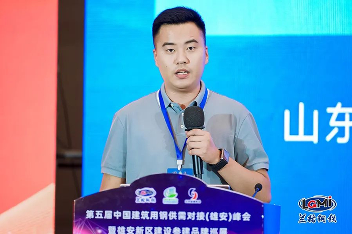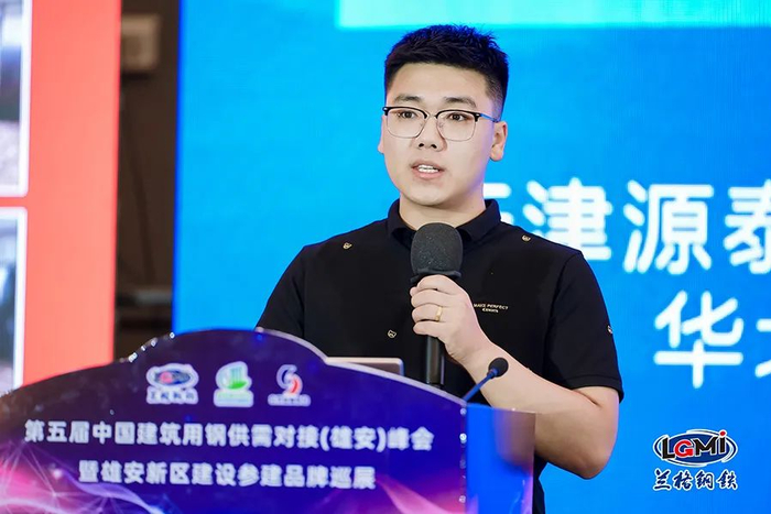 天津源泰德润钢管制造集团有限公司华北区域销售经理戴博涛发表了主题为“源泰德润方矩管 专注细分领域20年”的演讲,他对公司核心优势、产品认证、企业荣誉等方面进行了介绍,并对产品应用项目进行了展示。