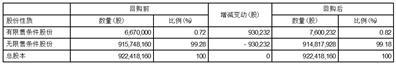 1、假设按本次回购金额的下限2,000万元,回购价格上限43元/股进行测算,本次回购股份全部用于实施员工持股计划或股权激励并全部予以锁定,回购数量约为465,117股,约占公司当前总股本的0.05%,预计回购后公司股本结构变化如下: