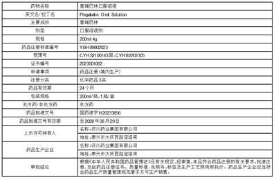 济川有限普瑞巴林口服溶液首次提交注册申请获得受理的时间为2021年01月29日。截至目前,该药品累计研发支出约832万元(未经审计),均已费用化。普瑞巴林口服溶液注册分类为化学药品3类,按照与参比制剂质量和疗效一致的技术要求审评并获批,批准后视同通过仿制药质量和疗效一致性评价,适应症包括带状疱疹后神经痛、纤维肌痛、成人部分性癫痫发作的添加治疗。