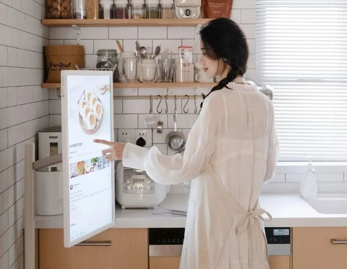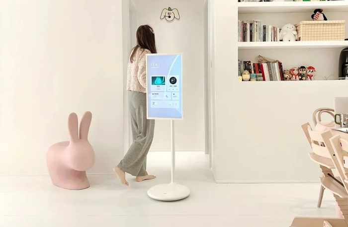 对于闺蜜机,小度的介绍是“一款可以推着走的27英寸超大智能平板产品”。
