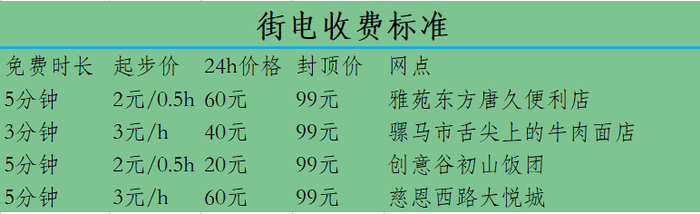 小电充电宝:最贵的单价5元,相邻点位价格不同