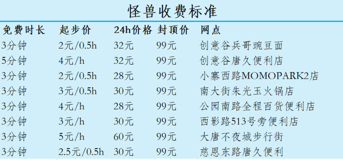 对于同一品牌来说,即使点位距离比较近,价格也存在差异,以怪兽和小电为例,记者在公园南路两家距离不足10米的怪兽充电宝扫码,发现虽然都显示每小时单价为4元,但一点位免费时长为3分钟,另一处则为5分钟,两处的24小时封顶价也分别为32元与28元。
