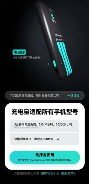 美团充电宝:最贵单价5元/h,部分点位免费时长1分钟
