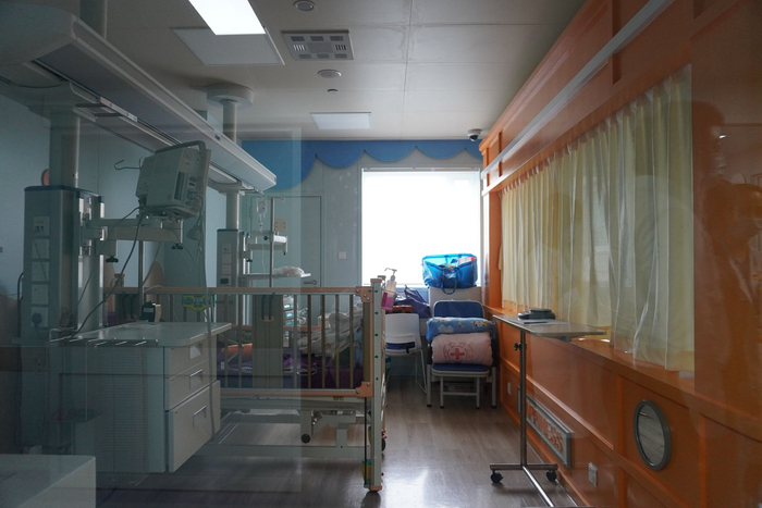 上海交通大学医学院附属上海儿童医学中心,三楼PICU走廊。本文图片均为 澎湃新闻记者 邹佳雯 图