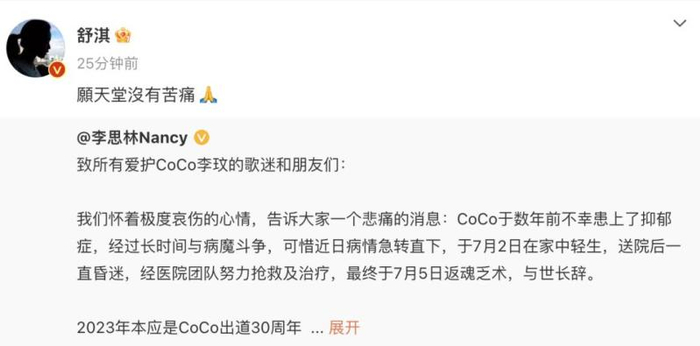 另据报道,李玟在7月2日当天还曾给粉丝发语音:“感受到大家对我的爱跟支持,然后你们做我的后盾,我会加油。那这段时间呢,希望你们自己也身体健康快乐,我非常想念大家,我再努力努力,想念你们爱你爱你。”