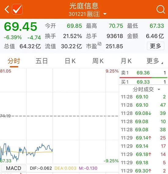 受大股东减持影响,光庭信息早盘直线跳水,盘中一度跌超9%。截至午间收盘,光庭信息跌6.39%,半日成交额6.46亿元,最新总市值64亿元。