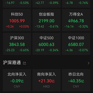 周四,三大指数继续震荡调整。截至午间收盘,上证指数跌0.53%,深证成指跌0.39%,创业板指跌0.61%。北向资金半日仅小幅净卖出近900万元。