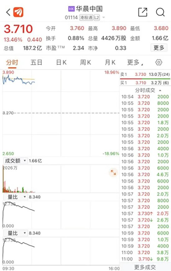 受大幅派息影响,今日早盘,华晨中国一度涨超18%。截至发稿,华晨中国涨13.46%。昨日晚间,该公司公告,计划于7月18日召开会议,讨论出售华晨宝马汽车25%股权所得款项的用途。据预计,这笔款项将用于宣派特别股息,每股不低于0.96港元,并有望在8月31日之前支付。