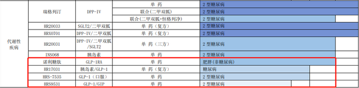 降糖的应用就像“手榴弹”,但减肥让它变成了“核弹头”级别的产品。在这方面,医药界已经按靶点类型和药物开发应用进度,形成三大梯队。