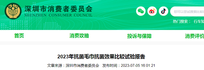 为回应消费者关切,引导科学消费,2023年2月至6月,深圳市消委会对市售抗菌毛巾商品开展比较试验,由深圳市英柏检测技术有限公司承检,对线下商超、线上电商平台购买的20款抗菌毛巾商品进行测评。