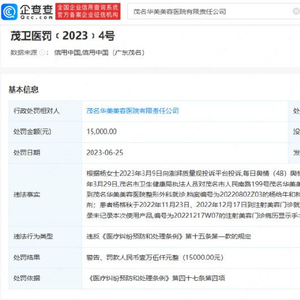 目前,该美容医院已因违反医疗纠纷预防和处理条例被罚1.5万元。值得注意的是,其曾多次被行政处罚,涉及门诊病历、门诊日志、医疗广告等。