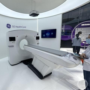在GE医疗展台上,一款搭配AI智能系统的CT扫描仪被摆放在醒目位置,与其它CT机不同,在这款名为深度天眼®CT的仪器上方有一个类似投影仪的方形盒子。GE医疗中国首席传播官钟路音告诉上游新闻记者,这款仪器将人工智能、大数据、云平台与CT相结合,让设备具备认知和行为能力,仅需三步,即可为单个患者节省将近30%的扫描时间,将临床医生的精力释放出来,更专注于诊断决策等更重要的环节。此外,“深度天眼系统”可以AI自动摆位和隔室操作,减少医患接触,在防疫期间发挥了作用,帮助临床应对疫情防控和扫描诊断流程中的各类挑战。