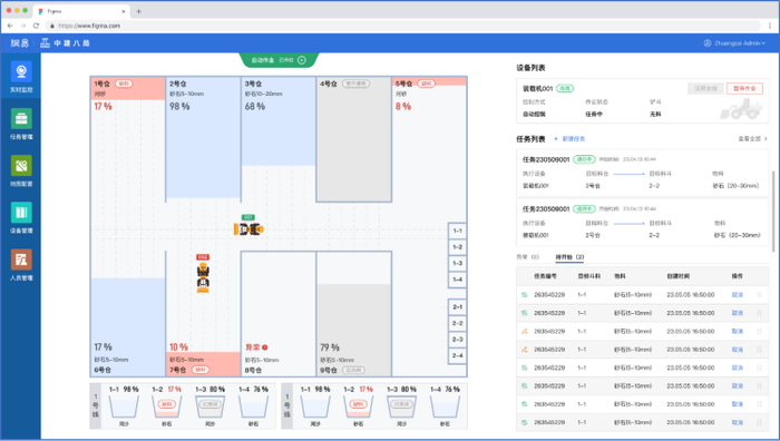 无人装载机器人由网易伏羲和中建八局联合研发,基于拌和站场景研发的高智能化、全自动化的一款主力工程机械,一方面,采用无人驾驶技术,实现环境感知、路径规划、主动避障、自主作业、自动监控与提醒等自动化功能;另一方面,利用数字挛生技术,搭建搅拌站智能系统,系统能利用大数据平台的综合数据分析,自主择优为站内装载机分发任务、实现装载机作业路径的智能规划执行。