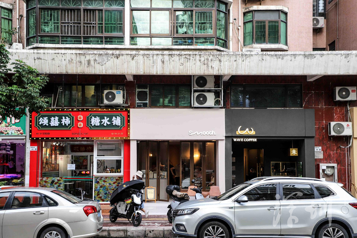 这是一条住宅楼间的“资深”商业街,人气很旺,处处是时光的痕迹。有着岁月感的楼房、街边着装随意、散淡溜达的居民,以及那无数的窗口人家,都让这条街自带家与童年的温馨气息。也许是因为这个缘故吧,那一家挨着一家的咖啡馆甜品店,看上去是那么接着地气儿,润着心坎儿。归属感与邻里感是这条街不同于深圳其他咖啡街的独特之处。