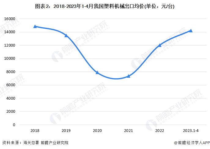 ——塑料机械出口均价经历下跌后企稳回升