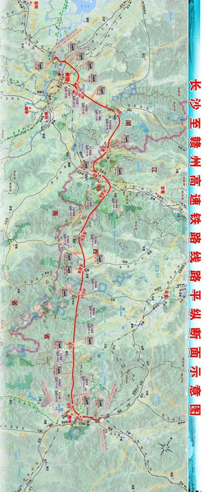 新建长沙至赣州高速铁路线路起自在建常德经益阳至长沙高铁长沙西站,经湖南省长沙市,江西省萍乡市、井冈山市、赣州市,终至赣州枢纽赣县站。