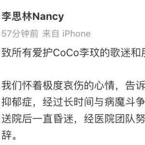 7月5日晚,歌手李玟的家人通过社交媒体宣布,李玟于7月2日在家中轻生,送院后一直昏迷,最终于7月5日离世。家人表示,李玟于数年前患上抑郁症,与病魔经过了长时间斗争,可惜近日病情急转直下。