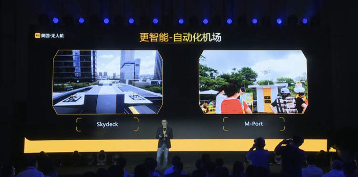 除了飞行器,美团开发了自动化机场,集成了飞机起飞、转载、自动化设备。其中,自动化设备已经在大商场投入使用。“我们叫起降机场,现在已接收近17万单的用户订单,不久将来,起降机场也能用来做餐箱的自动化装载。大家往外发送一单,可以直接把飞机叫过来,餐箱推过来,自动装载并自动起飞。”