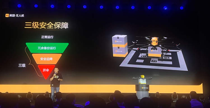 美团无人机硬件负责人胡孟表示,美团第四代无人机在动力、电池、飞行控制、传感器、定位等关键子系统上设有冗余备份,并在行业内首创“冗余备份运行—安全迫降—开伞”的三级安全保障体系;在无人机的安全控制体系上,新机型设置了人员权限、硬件、飞行信号、电子围栏等多层控制防御机制。