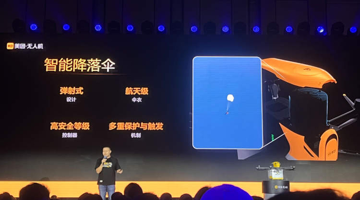 关于无人机的安全问题,美团无人机业务负责人毛一年在发布会现场向大家介绍了一个标准配置的降落伞系列。“这套系统,我们经过很多年的开发,经过了很多代的迭代。在大风天、大雨天,甚至大雪天,都被验证了,这套系统在紧急时可以成功开伞。”毛一年同时表示,实际上,降落伞系统只是安全保证的最后一道保障,在此之前,其实有很多软件、硬件、算法的保障,比如无人机有六个系统、六个电机、六个螺旋桨。“如果一个螺旋桨失效怎么办?我们用一台类似航拍器的机器,撞击我们的无人机,容错算法通过调配,在100到200毫秒内,将动力重新分配到其他的螺旋桨上,这样飞机就可以保障自己的安全。同时,飞机自主缓缓降落,不会产生安全风险。”