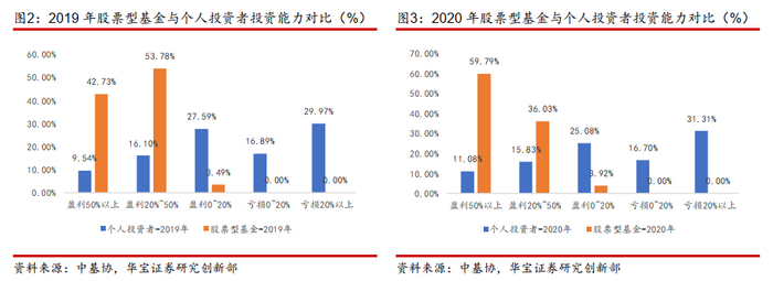同时,卖方销售模式下,投顾人员缺失对客户的深度陪伴,投资者出于“认知不足+市场波动+心理预期偏差”,容易冲动决策、追涨杀跌。产品供给与需求的匹配错位、投资者容易非理性短期持有及频繁交易,叠加效应导致市场出现“基金产品赚钱,基民不赚钱”的困境,根据中基协发布的《中国证券投资基金业年报(2021)》显示,基金产品比个人投资者表现出更强的投资管理和收益获取能力。