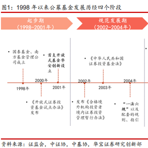我国公募基金正式起步于1998年,根据时间节点整体可以划分为四个阶段。