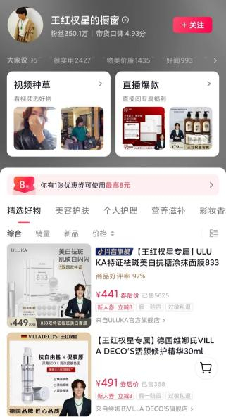 基于此,他们的带货关键词主要是小众贵妇产品,大多是单价高、但大多数人并不熟悉的品牌。比如王红权星的带货产品中,就有880的法国让缇丝面膜、8000多的gemo金茉美容仪、6599的那魅嫩肤仪等。田田小阿姨的带货列表中,有上千元的抗糖化口服液、小仙炖鲜炖燕窝等。
