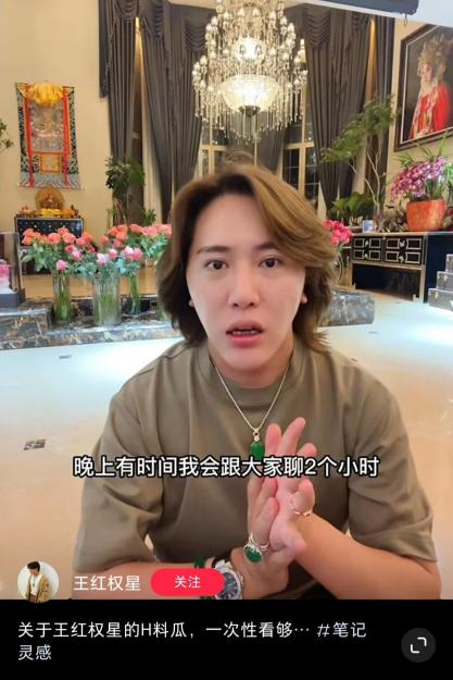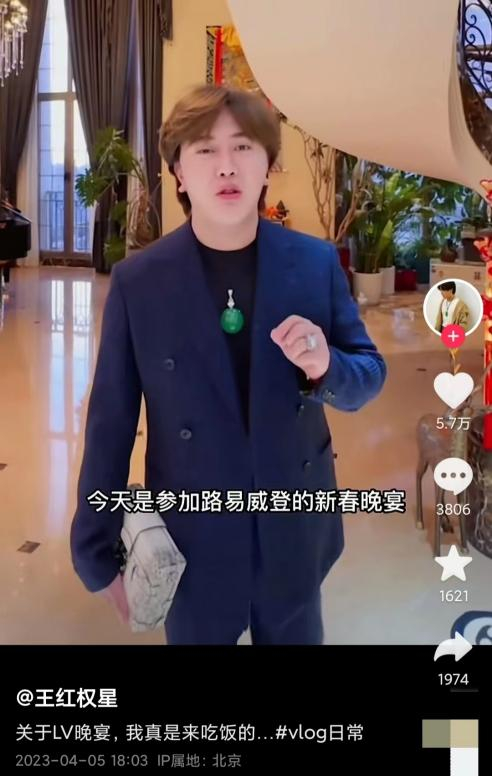 王红权星的视频中,放满奢侈品包包的墙面只是录制视频时的背景墙,真正刺激网友眼球的也不仅是上千平的复式大别墅,还有价值不菲的翡翠玉石。观看视频时,一不小心就会被他身上鸡蛋般大小的翡翠玉石所吸引,而且视频中会频繁出现不同种类、不同大小的珠宝玉石。