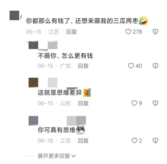 在评论区,很多都是正面或者自嘲的内容,比如:“吃着5毛钱的包子,看着几百万的包包,这就是生活呀”、“真羡慕你,你随便一个包就能解决我房子车的大问题了”。不少人还调侃:“看王红权星的视频是我了解上流社会的*路径。”