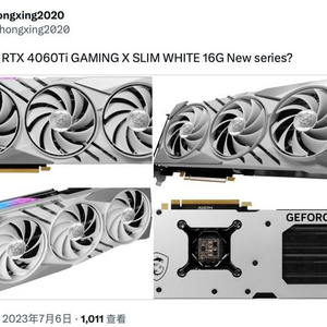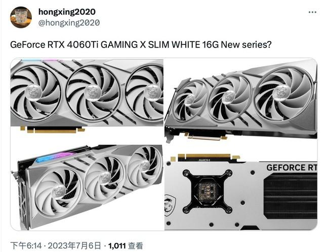 近日,“hongxing2020”曝光了微星RTX 4060 Ti GAMING X SLIM WHITE 16G显卡的外观。最新消息显示,RTX 4060 Ti 16G将于7月18日上市。