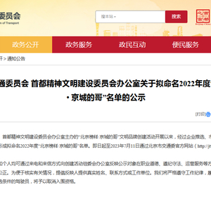 北京市交通委官网消息,由北京市交通委员会、首都精神文明建设委员会办公室主办的“北京榜样·京城的哥”文明品牌创建活动,已形成拟命名2022年度“北京榜样·京城的哥”名单。即日起至7月11日通过北京市交通委官方网站向社会公示。