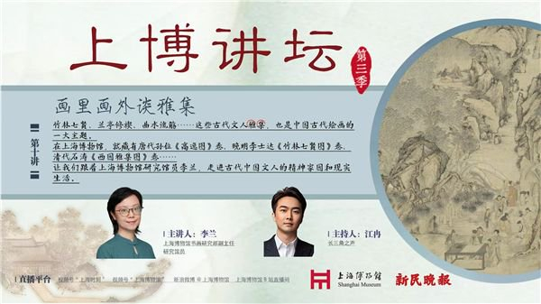 昨晚,上海博物馆书画部研究馆员李兰主讲“上博讲坛”第三季第十讲“画里画外谈雅集”,带观众看懂文物中的“雅集图”,走近古代文人的雅集故事。
