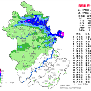 7日至10日安徽省仍维持较强降水。7日至9日主雨带维持在沿淮淮河以南,并伴有短时强降水(40~80毫米/小时)和局地雷暴大风等强对流天气,其中7日至8日江淮之间中南部到江南北部有中到大雨,局部暴雨到大暴雨;9日沿淮到沿江部分地区大雨,局部暴雨。10日主雨带北抬,淮河以北和江淮之间北部部分地区中到大雨,局部暴雨。