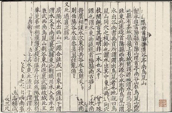 现存最早的刻本,人们习惯称其为“残宋本”,大约刊印于南宋初期,仅存十一卷半,且没有一叶是完整的,字数不到全书的1/3。直到明代,随着对《水经注》研究的展开,才出现了对底本进行了校改的版本。