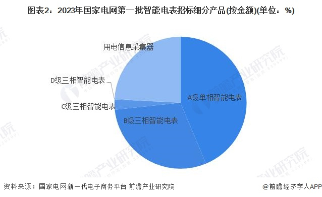 根据国家电网新一代电子商务平台数据显示,2023年第一批智能电表招标中,A级单相智能电表占比最高,达43.7%,其次为B级单相智能电表,占比29.59%。