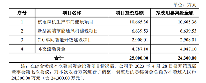 据悉,此次可转债发行所募集资金将对公司现有主营业务进行扩展和延伸,包括新建核电风机和新型高端节能通风机生产车间及相关的场地、设备等投入,以及对现有罗茨鼓风机车间智能化升级改造。