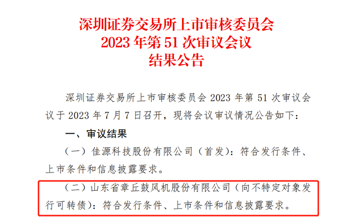 7月7日,山东省章丘鼓风机股份有限公司(股票代码:002598,股票简称“山东章鼓”)可转债发行申请成功过会。公司此次计划募集资金约2.43亿元,用于核电风机生产车间建设项目、新型高端节能通风机建设项目、710车间智能升级建设项目并补充流动资金。