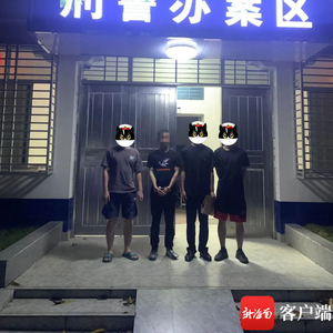 阿最(左二)被陵水警方押解回琼。(陵水警方供图)