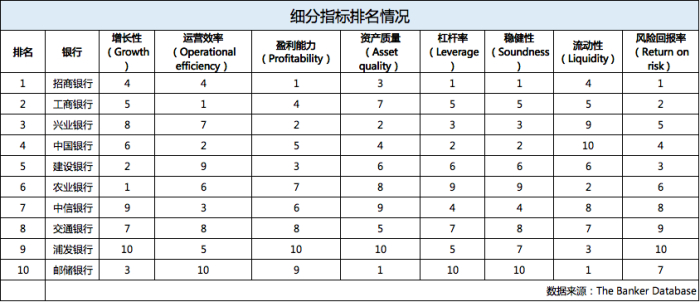 此次评估细分指标包括增长性(Growth)、运营效率(Operationalefficiency)、资产质量(Assetquality)、杠杆率(Leverage)、稳健性(Soundness)、流动性(Liquidity)、风险回报率(Returnonrisk)和盈利能力(Profitability)等。